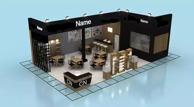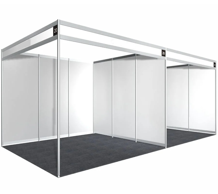 Includes: Display panels on 2/3 sides, 1 table and 2 chairs, 3 spotlights, a 13-ampere socket, a fascia board with the company’s name, carpet on the floor, dustbins, general security and cleaning arrangements